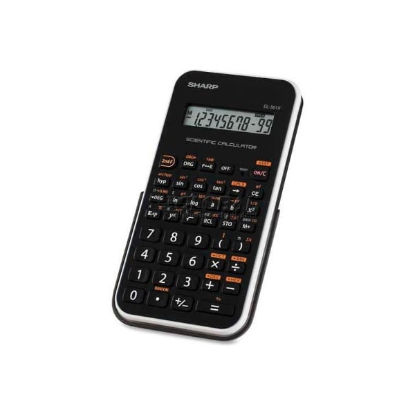 Sharp scientific calculator, el501xbwh, 10-digit, 3-1/4" x 6 x 1/2", black/white scientific calculator performs 131 functions and features a large 10-digit lcd numeric screen, one memory and one variable statistic. Functions include complex number calculations, percent, sin, cos, tan, sinh, cosh, tanh, square root and more. The hard cover protects the calculator so it can withstand frequent use. Calculator is recommended for general math, pre-algebra, algebra and trigonometry. Pta approved tests include ap chemistry, ap physics, psat/nmsqt, sat i, sat ii, math ic, and math iic. Calculator is battery-powered. functions variable statics complex number percentage sin cos tan sinh cosh tanh memory square root larger quantity quotes available. Please call 1-888-978-7759. this product arrives to most customers in 2-3 business days.