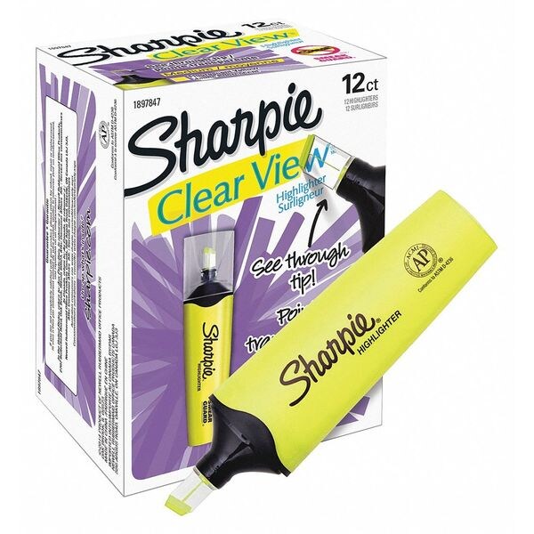 Clear View Highlighter, Yllw, PK12, Ink Color: Fluorescent Yellow (Discontinued)