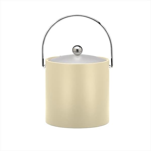 B.C. Ivory 3 Quart Ice Bucket- Chrome Bale Handle- Chrome Flat Knob- Frosted Vinyl Lid