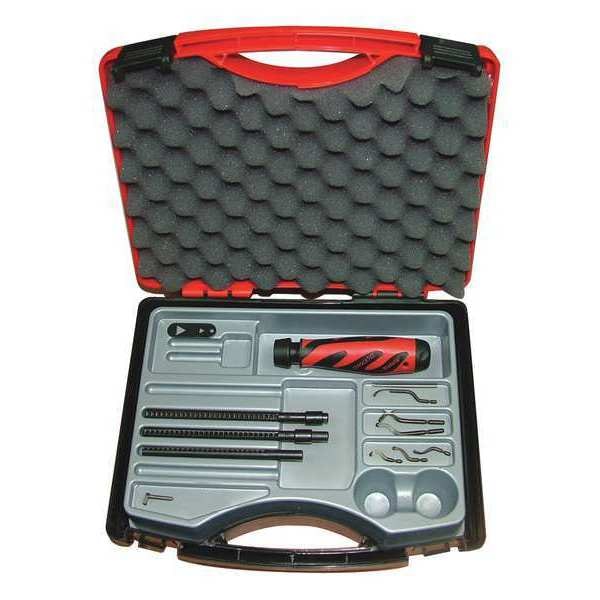 Deburring Tool Kit, Product Type Deburring Hand Tool Kit, Surface Application Back Hole Edge, Cross Hole, Flat Surface, Front Hole Edge, Hole Inner Surface, Straight Edge, Blade Material High Speed Steel, Blade Finish Not Applicable, Blade Trade Number B10, B20, B30, B50, B60, C40, E100, E300, Color Black, Orange, Number of Blades 8, Handle Trade Name Mango II, Holder Trade Letter B, C, E, Features Blade Inserts Axially or Perpendicular to Handle, Ergonomic Handle, Handle Material Plastic