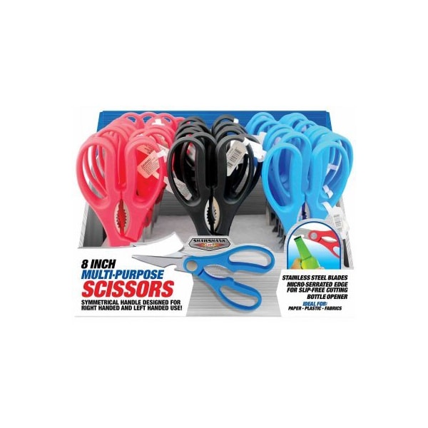 8 multipurpose cushion grip scissors with stainless steel blades Comes in 36 piece counter display