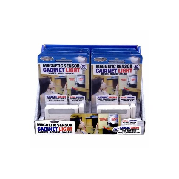Magnetic Sensor Turns on Automatically when door opensWorks with cabinets, mail boxes, drawers, and moreInstall anywhere with the included Adhesive Mounting Pads 2 AAA Batteries Included