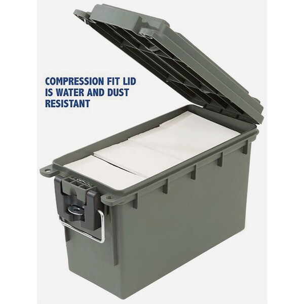 The Sheffield Field Box is a must-have for storing and safely transporting valuables when youre outdoors. Designed to better protect ammo equipment hunting and fishing gear electronics tools and more it features a unique compression fit lid that is water and dust resistant a molded lip for added strength and improved protection against contaminants and 3 locking options to guard against prying and tampering. It also features base-to-lid interlocking system that makes it easier to stack and reduces tipping plus a hefty handle for easy carrying.