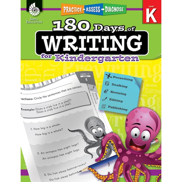 180 Days of Writing is an easy-to-use resource that provides kindergarten students with daily practice activities to build writing and grammar skills. Students interact with mentor texts and then apply their learning by writing opinion/argument, informative/explanatory, and narrative pieces. For use at home or at school, this workbook features: