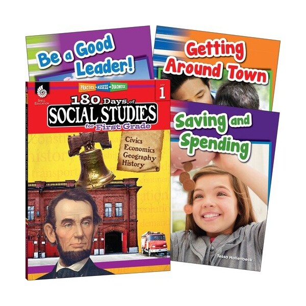 Set the foundation for reading and social studies success with this book set. Comprehensive material covers the essential social studies concepts that students need to know at their grade level. Engaging material builds social studies skills through fun, daily practice worksheets and high-interest books. Social studies workbook offers 180 days of activities from either history, economics, civics or geography. Three nonfiction books for children help readers understand social studies topics.