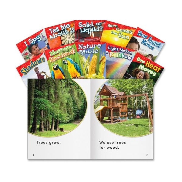 Let your students learn and explore physical science with this 10-book set. Organized sections teach students how sound moves, how light makes a rainbow, how heat moves and more. Vibrant images are paired with easy-to-read text to keep students engaged from cover to cover. Titles include I Spy, Tell Me About It, Solid or Liquid?, Nature Made, Here Comes the Sun, How Sound Moves, Message Received, Light Makes a Rainbow, Shadows, How Heat Moves. Set is designed for kindergarten to first-grade.
