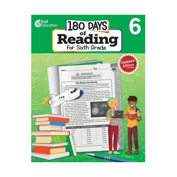 Shell Education Teacher Created Materials Workbook,180 Days,Reading,2nd Edition,6th Grade BOOK,180 DAYS READ 2ND,GR 6