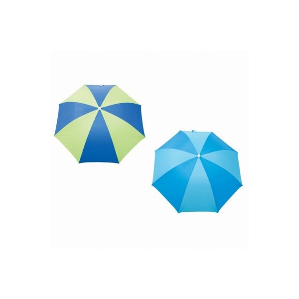 6 Polyester Beach Umbrella Lined For Sun Protection UPF 50+ Blocks 98% Of UV/UVB 75 Dernier Polyester Fabric Adjustable Height Powder Coated Steel Pole & Ribs Assorted Tone On Tone Colors Of Teal Green & Blue.
