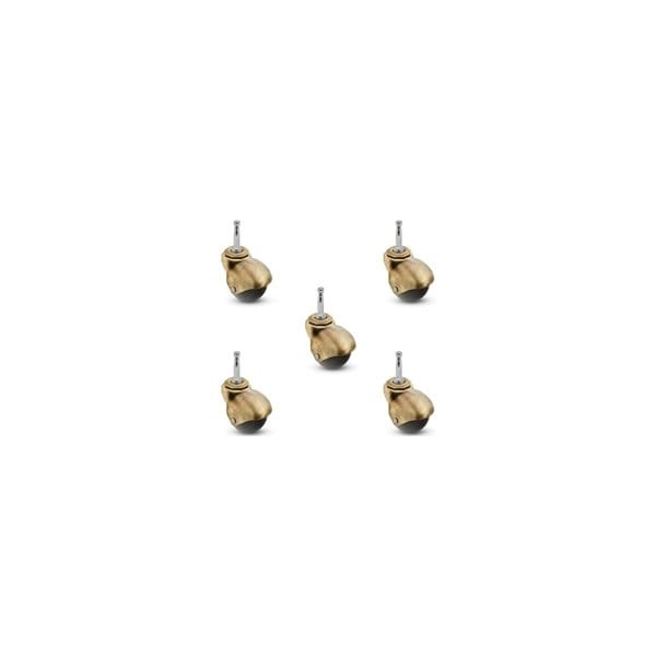 PBH20302WA-3ED-5, 2'' Spherical Ball Caster, 5/16'' x 1-1/2'' Grip Ring Stem CasterThis listing is for a set of five 5 casters, Part#: PBH20302WA-3ED commonly used on wooden furniture and wooden items.Baron casters are a decorative mobility solution ideal for any light-duty application where aesthetics is a consideration. Spherical wheels provide flexibility in the movement to ensure easy turn capabilities perfect for furniture and store fixtures.if you intend to add on a matching wood socket you may select the socket on the right-hand side of this page. If you would like to order the socket separately or view more information and specification please Click Here to view the Wood Sockets full product page.Socket Installation Instructions:Drill a 3/8'' x 1-5/8'' hole in the woodInsert the socketthen hammer the socket so the teeth recess into the woodOnce installed, insert the caster's grip neck stem until secure Technical Specifications:Mounting Height: 2-5/8''Swivel Radius: 2-1/4''Finish Type: Windsor AntiqueDynamic Load Capacity: 80 lbs per caster / 400 lbs per casterMounting Type: 5/16'' Diameter by 1-1/2'' LengthWheel Type: Spherical BallWheel Material: PolyolefinQuantity: 5 pieces