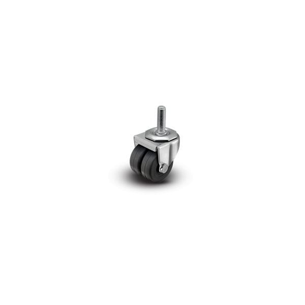 2'' Low Profile Swivel Stem Caster, Soft Rubber Dual Wheel, 180 lbs Cap, 1/2''-13x1-1/2'' Threaded