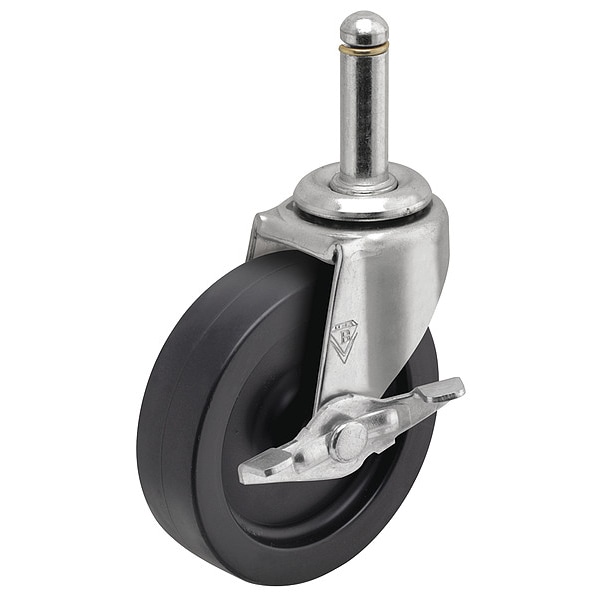 Stem Caster, Swivel Caster with Brake, 90 lb Load Rating, 0 to 299 lb, 2 in Wheel Dia., 13/16 in Wheel Width, Polypropylene Wheel/Tread Material, 2 5/8 in Mounting Height, Plain, 7/16 in x 1-3/8 in Caster Stem Size, Friction Ring, Steel Caster Frame Material, Zinc Plated Frame Finish, Yes Non-Marking, 1 Number of Wheels
