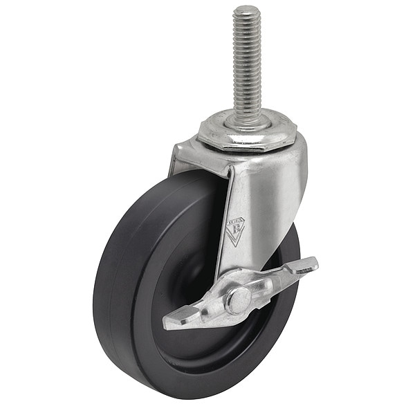 Stem Caster, Swivel Caster with Brake, 90 lb Load Rating, 0 to 299 lb, 2 in Wheel Dia., 13/16 in Wheel Width, Polypropylene Wheel/Tread Material, 2 5/8 in Mounting Height, Plain, 3/8 In.-16 x 1 in Caster Stem Size, Threaded, Steel Caster Frame Material, Zinc Plated Frame Finish, Yes Non-Marking, 1 Number of Wheels