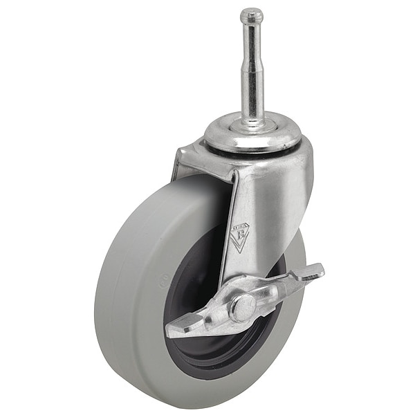 Stem Caster, Swivel Caster with Brake, 90 lb Load Rating, 0 to 299 lb, 2 in Wheel Dia., 13/16 in Wheel Width, Polyurethane Wheel/Tread Material, 2 5/8 in Mounting Height, Plain, 5/16 in x 1-1/2 in Caster Stem Size, Grip Neck, Steel Caster Frame Material, Zinc Plated Frame Finish, Yes Non-Marking, 1 Number of Wheels
