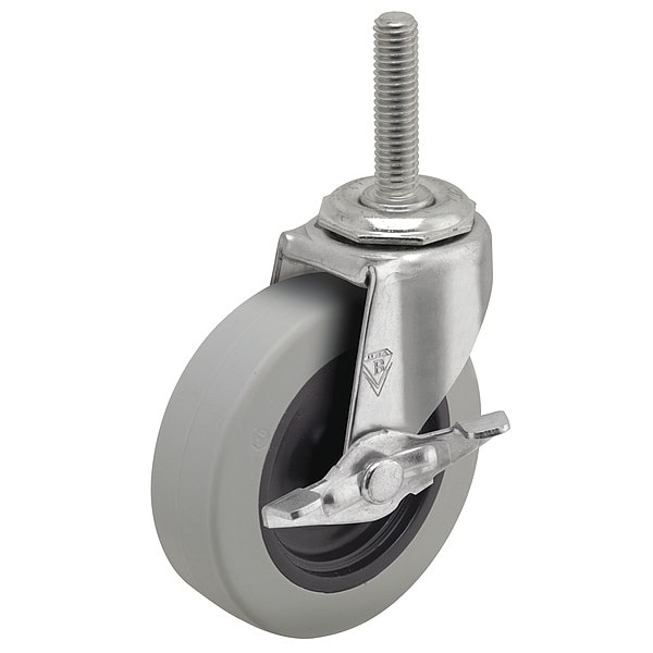 Stem Caster, Swivel Caster with Brake, 90 lb Load Rating, 0 to 299 lb, 2 in Wheel Dia., 13/16 in Wheel Width, Polyurethane Wheel/Tread Material, 2 5/8 in Mounting Height, Plain, 3/8 In.-16 x 1 in Caster Stem Size, Threaded, Steel Caster Frame Material, Zinc Plated Frame Finish, Yes Non-Marking, 1 Number of Wheels