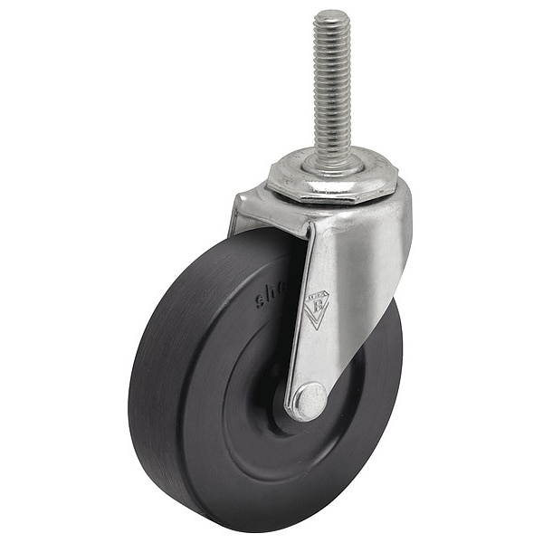 Stem Caster, Swivel Caster, 80 lb Load Rating, 0 to 299 lb, 2 in Wheel Dia., 13/16 in Wheel Width, Rubber Wheel/Tread Material, 2 5/8 in Mounting Height, Plain, 3/8 In.-16 x 1 in Caster Stem Size, Threaded, Steel Caster Frame Material, Zinc Plated Frame Finish, Yes Non-Marking, 1 Number of Wheels