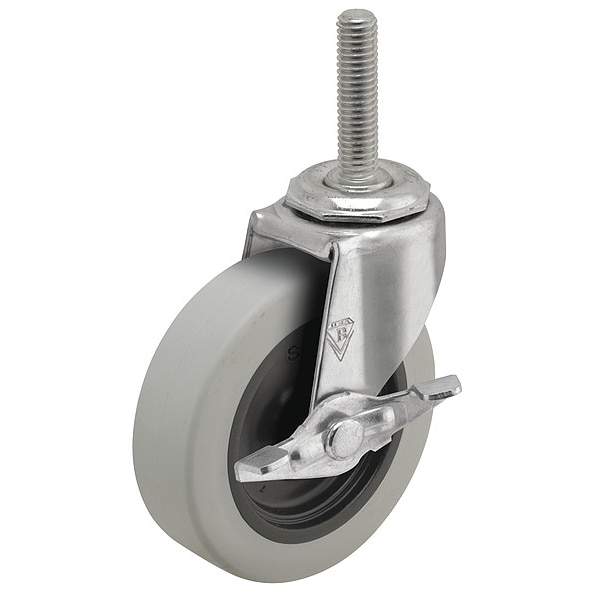 Stem Caster, Swivel Caster with Brake, 80 lb Load Rating, 0 to 299 lb, 2 in Wheel Dia., 13/16 in Wheel Width, Rubber Wheel/Tread Material, 2 5/8 in Mounting Height, Plain, 5/16 In.-18 x 1 in Caster Stem Size, Threaded, Steel Caster Frame Material, Zinc Plated Frame Finish, Yes Non-Marking, 1 Number of Wheels