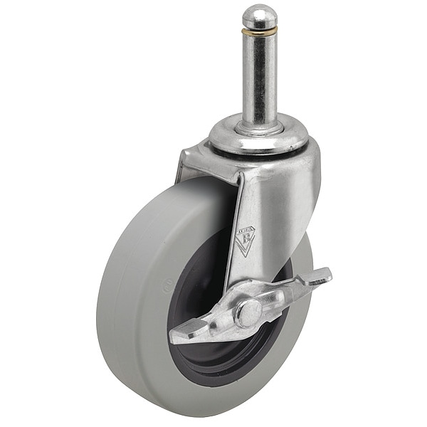 Stem Caster, Swivel Caster with Brake, 120 lb Load Rating, 0 to 299 lb, 3 in Wheel Dia., 13/16 in Wheel Width, Polyurethane Wheel/Tread Material, 3 1/2 in Mounting Height, Plain, 7/16 in x 7/8 in Caster Stem Size, Friction Ring, Steel Caster Frame Material, Zinc Plated Frame Finish, Yes Non-Marking, 1 Number of Wheels