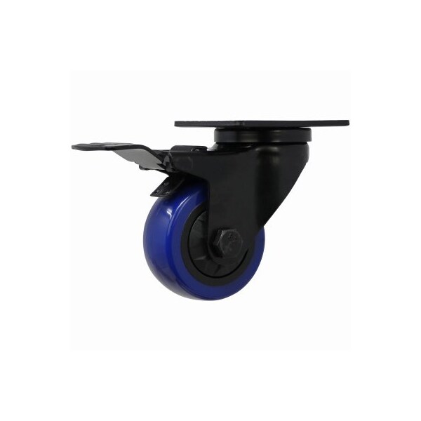 1 Pack, 3 in Diameter, Blue Diamond TPU Wheel Caster Features a foot activated total lock break that simultaneously stops the caster wheel rotation and swivel Double ball bearing swivel, black powder coated rig, 258 in x 334 in plate mount and 225 lb load capacity Offers soft and resilient nonmarking blue TPU wheels for quiet and smooth rolling over most surfaces Roller bearing sealed hubs for long term and trouble free performance