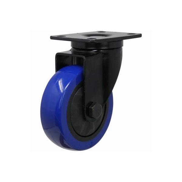 1 Pack, 4 in Diameter, Blue Diamond TPU Wheel Caster Features double ball bearing swivel, black powder coated rig, 258 in x 334 in plate mount and 300 lb load capacity Offers soft and resilient nonmarking blue TPU wheels for quiet and smooth rolling over most surfaces Roller bearing sealed hubs for long term and trouble free performance