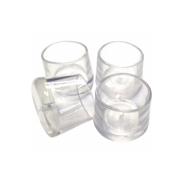 4 pack, 34 in, Clear, thermoplastic Elastomer Leg Tips Fits 34 in OD furniture leg 34 in tall Helps safeguard against damage to flooring surfaces Also holds furniture in place when in use and eliminate noisy scooting of chairs and stools