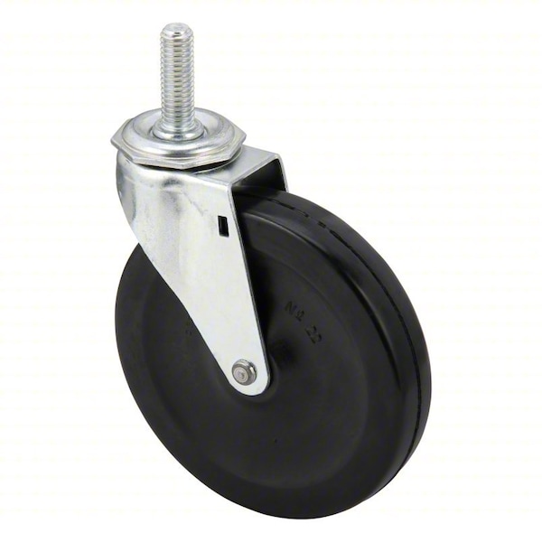 Stem Caster, Swivel Caster, 125 lb Load Rating, 0 to 299 lb, 5 in Wheel Dia., 1 in Wheel Width, Rubber Wheel/Tread Material, 5 3/4 in Mounting Height, Plain, 3/8 In.-16 x 1 in Caster Stem Size, Threaded, Steel Caster Frame Material, Zinc Plated Frame Finish, Yes Non-Marking, 1 Number of Wheels