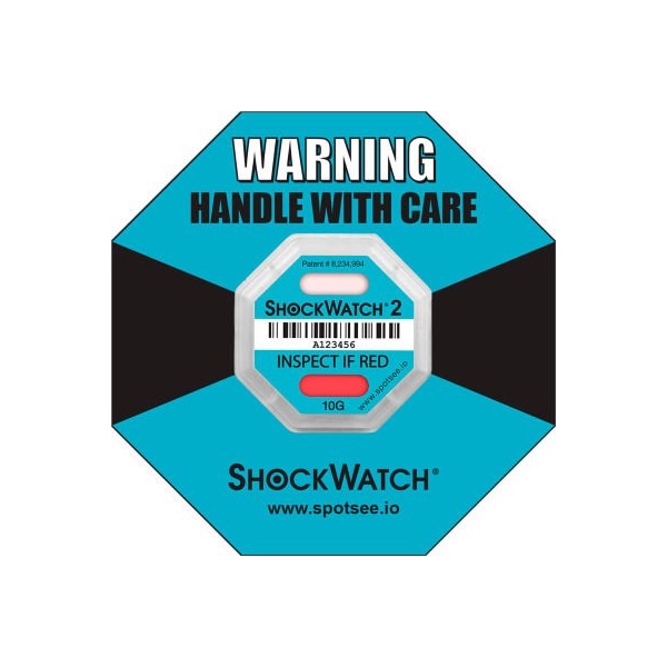 SpotSee ShockWatch 2 Serialized Framed Impact Indicators, 10G Range, Teal, 50/Box