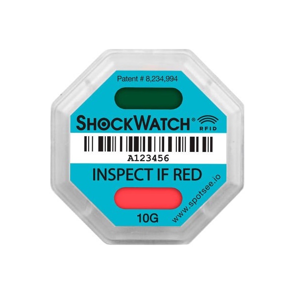 SpotSee ShockWatch RFID Impact Indicators, 10G Range, Teal, 100/Box