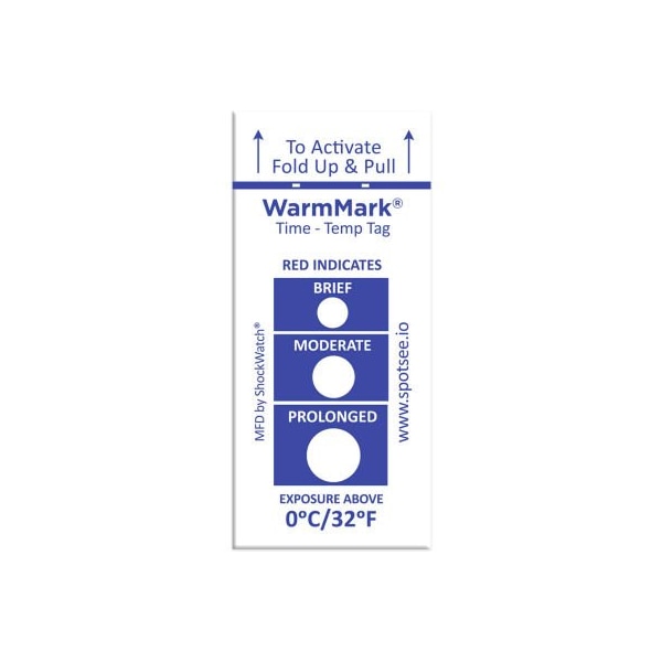 SpotSee WarmMark Time Temperature Indicators, 0 Degrees C/32 Degrees F, 100/Box