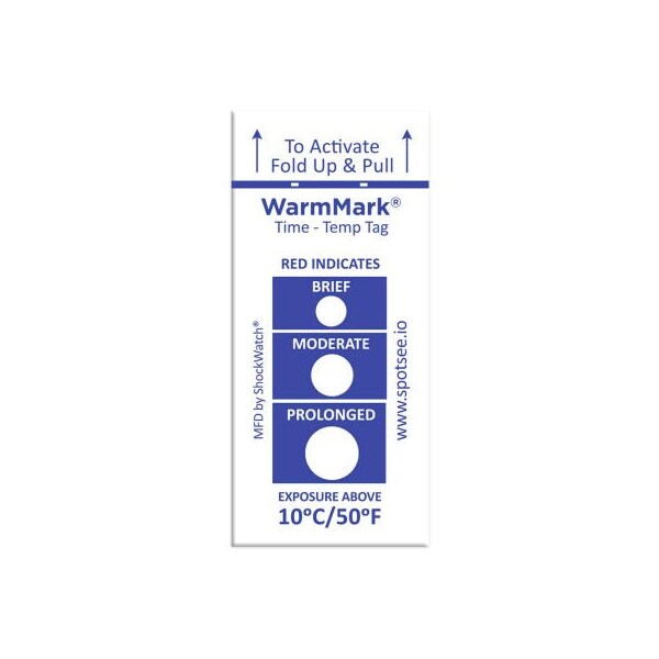 SpotSee WarmMark Time Temperature Indicators, 10 Degrees C/50 Degrees F, 100/Box