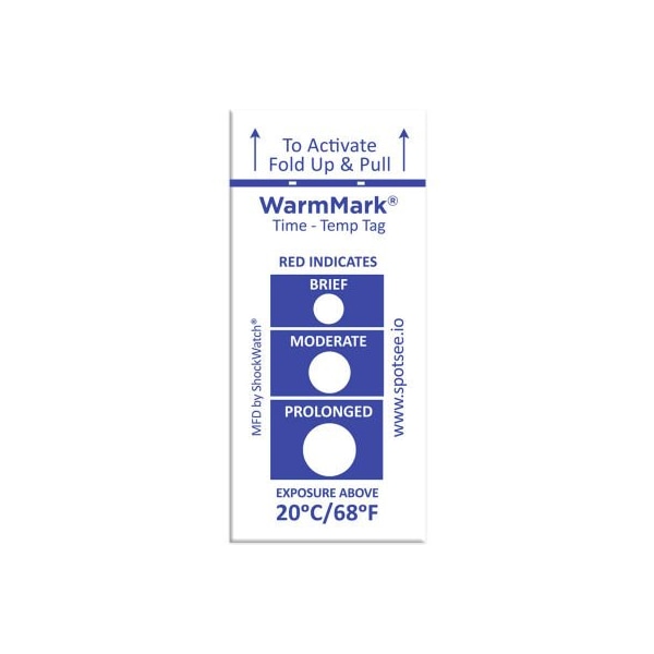 SpotSee WarmMark Time Temperature Indicators, 20 Degrees C/68 Degrees F, 100/Box