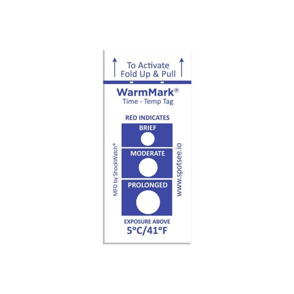 SpotSee WarmMark Time Temperature Indicators, 5 Degrees C/41 Degrees F, 100/Box