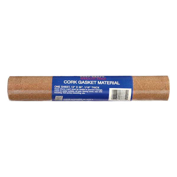 Seal leaks with shop craft cork gasket material by custom accessories. Use this gasket material anywhere parts must be sealed to prevent leakage. Can be used on vehicles, tractors and in many other applications. Works well on water outlets, oil pan, timing cover, rear axle housing, fuel pump and more.