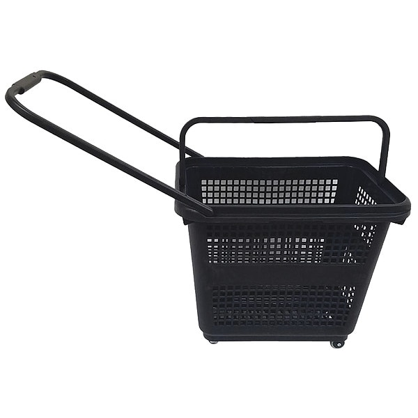 Rolling Hand Basket, Basket Material Plastic, Color Black, Overall Height 18 1/2 in, Overall Length 22 7/8 in, Overall Width 15 3/4 in, Shape Rectangular