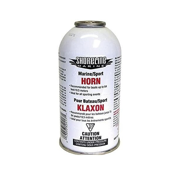Made for emergency signaling purposes, these air horns are also popular for sporting events and celebrations 120 decibel sound is audible up to 1 mile away Meets USCG specifications Available in three different sizes as well as an 8 ounce replacement canister Shoreline Marine SL55581 039364072422