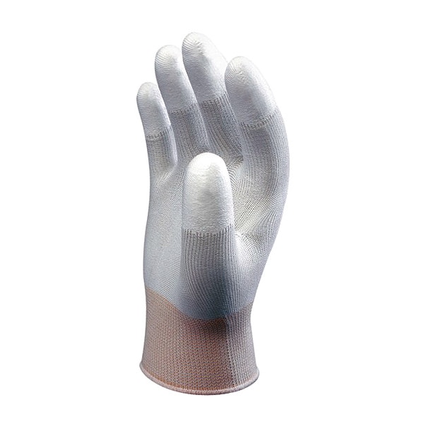 Coated Gloves, Polyurethane, Smooth, Fingertips, Not Rated Abrasion Level, White, M (7) 1 PR