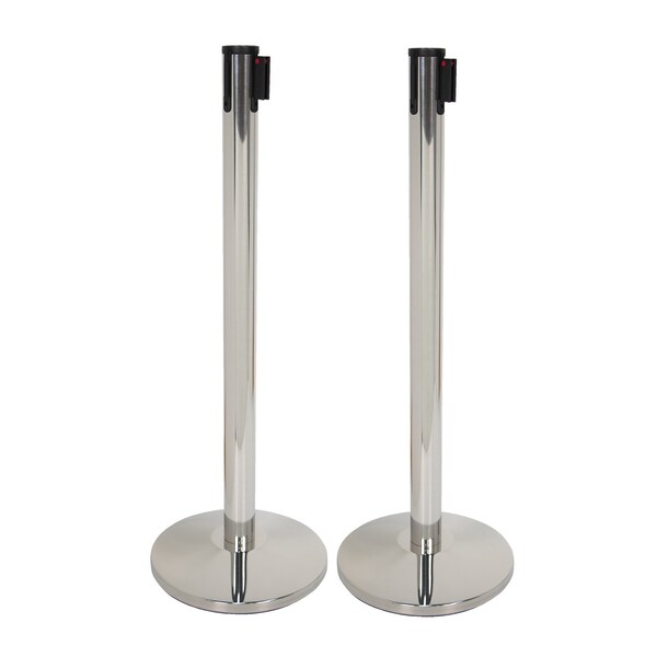 Perfect for controlling the flow and direction of customer queues. Sold in sets of 2. Available in Black and Chrome posts with a black tension belt. 4 point connections