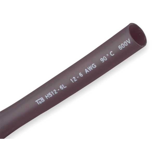 Heat Shrink Tubing, Heavy Wall, Material Cross-Linked Polyolefin with Adhesive, Flame Retardant No, Adhesive Lined Yes, Shrink Ratio 3:1, Use With Wire Size 8 AWG to 6 AWG, I.D. Before Shrinking 0.51 in, I.D. After Shrinking 0.16 in, Wall Thickness After Shrinking 0.09 in, Length 6 in, Shrink Tubing Properties High Heat-Resistant, Color Black, Temp. Range -67 Degrees to 230 Degrees F, Package Style Individual Pieces, Min. Shrink Temp. 248 Degrees F, Dielectric Strength 600 V