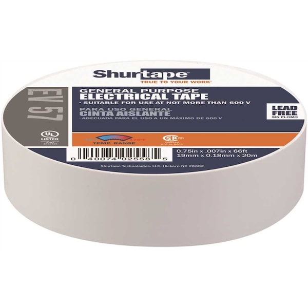 EV 57C is a general purpose grade, 7.0 mil vinyl insulating electrical tape. Used in a variety of mechanical and electrical applications, EV 57C is also used for color-coding and phasing tasks. EV 57C is UL Listed and CSA Approved and is a highly conformable, lead free and flame retardant colored electrical tape for use indoors and out.UL ListedCSA approvedHighly conformableHand-tearableLead freeFlame retardantResistant to UV, oils, acids, alkalies, corrosive chemicals and waterPVC backingNon-corrosive, rubber-based adhesiveAlso available in black