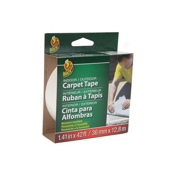 Duck, 141 x 42', Fiberglass IndoorOutdoor Carpet Tape, Excellent Adhesion To Smooth Rough Surfaces, Permanent Double Sided Tape, Indoor Outdoor Use, Water Mildew Resistant, Ideal For High Traffic Areas Where Moisture Is A Problem Such As Bathrooms, Basements Decks