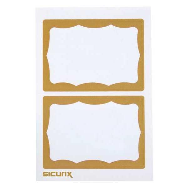 ID Adhesive Badge, Adhesive, Number Series Blank, Material Paper, Color White on Gold, Length 3-1/2 In., Width 2-1/2 In., Height 1/64 In., Legend Blank, For Use With Inkjet/Laser Printers, Includes Write-On Area, Material Thickness 1/18 In., Package Quantity 600
