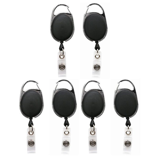 Quick Clip Oval ID Badge Reel, Black, 6PK