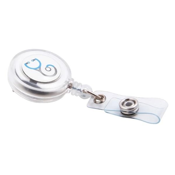 Show pride in your profession with Baumgartens new medical card reels. Each card reel has a 30" reach strap clip and a swivel spring clip that easily attaches to scrubs belts lapels or purse strap. These card reels are great for physicians nurses paramedics hospital staff medical students and medical office workers. Reel it out to show your ID badge or name tag or for easy use at the security access panel. Because it's retractable you never have to take it off which means you'll neverforget where you put it. These card reels have a round design depicting a stethoscope. This item meets or exceeds RoHS compliance for lead mercury bromine chrome and cadmium. Badge reel connects easily to ID cards. Show pride in your profession. Clip easily to belt or lapel. Extends to 30'