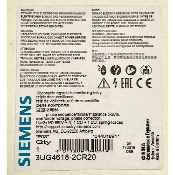 2CR20 SIRIUS Phase Sequence Undervoltage Relay Module (Discontinued)