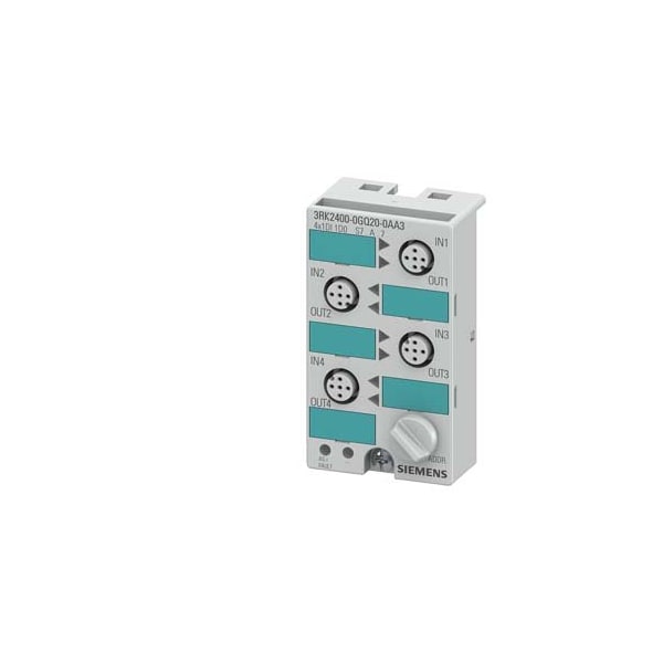 AS-i compact module K45 digital A/B slave 4 x 1 DI/1 DQ, IP67 4 x 1 input/1 output 4 x M12 socket Total current for all inputs and outputs max. 200 mA Supply I/O via U_ASI Mounting plate 3RK1901-2EA00 or 3RK1901-2DA00 is to be ordered separately