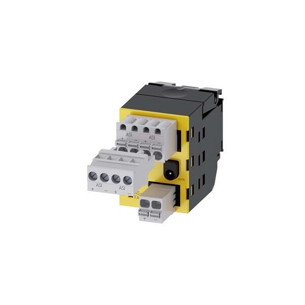 AS-Interface module, 2 safe inputs, 1 output, black, 4-pole connector With screw terminal, 2-pole and 4-pole connector with spring-type terminal, for front plate mounting, Customer-specific selection with SIRIUS ACT configurator CIN