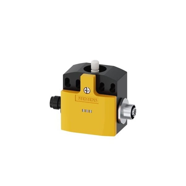 Basic switch without actuator head Plastic enclosure 50 mm wide ASIsafe integrated AS-i status: 1:F-IN1, 2: F-IN2 3:AS-i/FAULT Slow-action contacts 2 NC with M12 connector 4-pole Channel 1 to NC, Channel 2 to M12 socket on the right