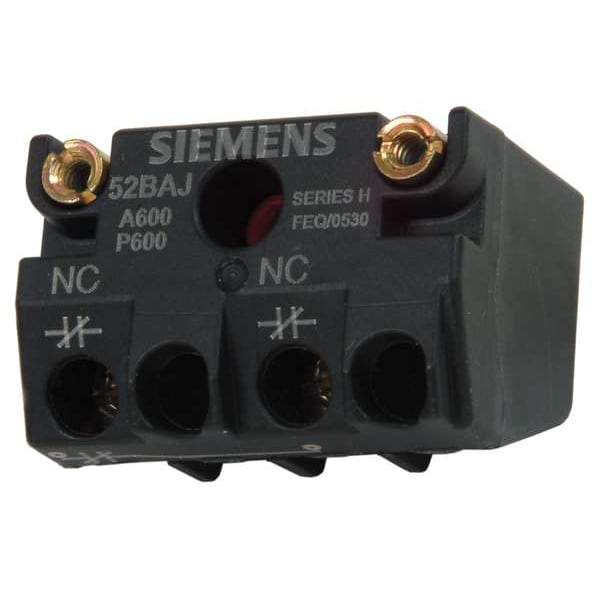 Contact Block, Contact Form 1NC, Contact Rating 10A AC/5A DC @ 600V AC/DC, For Use With Siemens 30mm Push Buttons, Action Momentary, 30 mm, Application Operator, NEMA Contact Rating Designation A600, Color Black, Terminal Connection Screw, Standards CSA, UL Listed