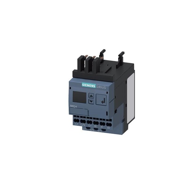 Current monitoring relay for IO-Link, can be mounted to Contactor 3RT2, Size S00 Apparant/active current monitoring 1.6-16 A, 20-400 Hz, 3-phase Supply voltage 24 V DC 1 change-over contact Monitoring for Current overshoot and undershoot Current asymmetry Phase failure, Cable break Phase sequence, Residual current Blocking current, Switching cycle and Operating hours counter Warning and alarm thresholds Auto-reset or manual reset ON delay 0-9999.9 s OFF delay 0-9999.9 s Reclosing delay 0-300 min spring-type connection system