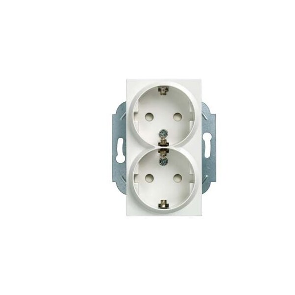 DELTA miro SCHUKO double socket outlet 10/16A 250V with/without screw-type terminals with increased touch protection titanium white