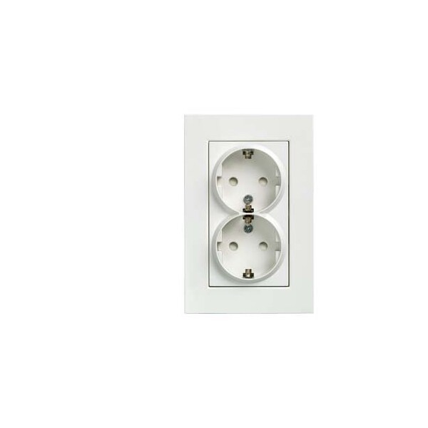 DELTA miro SCHUKO double socket outlet with frame 10/16 250 V with/without screw-type terminals with increased touch protection titanium white